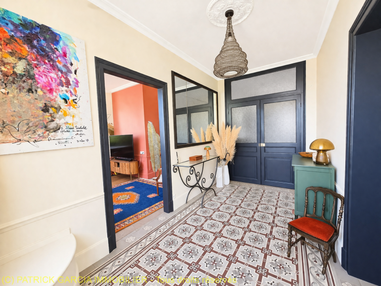 Dès l’entrée, vous serez séduit par les moulures préservées et les superbes carreaux de ciment témoignant du charme de l’ancien.