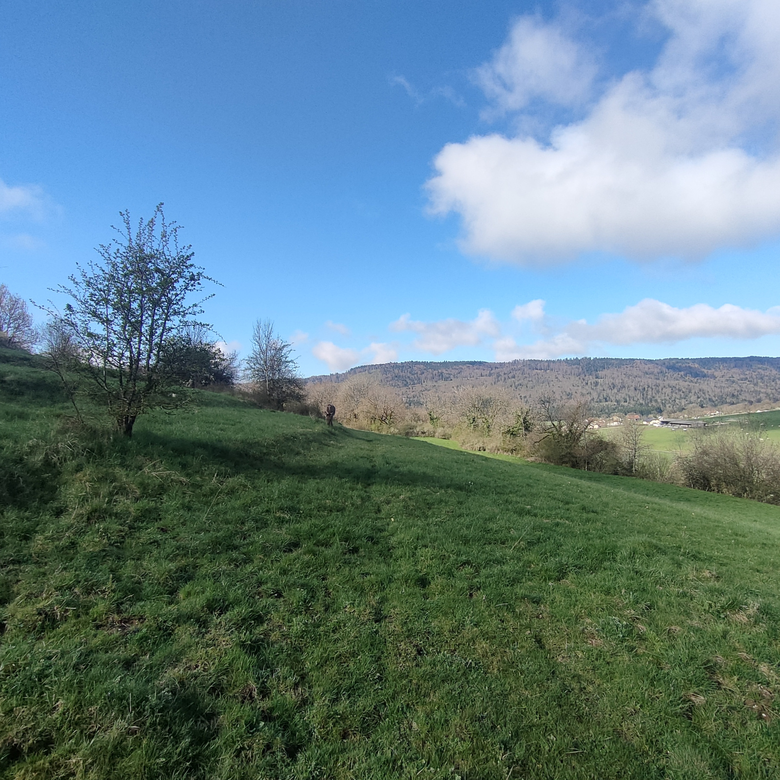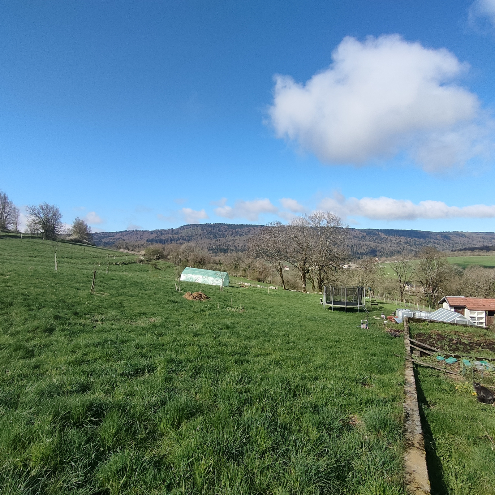 Son terrain (essentiellement en prés + partie forêt) de 4.3 hectares sur lequel coule un ruisseau