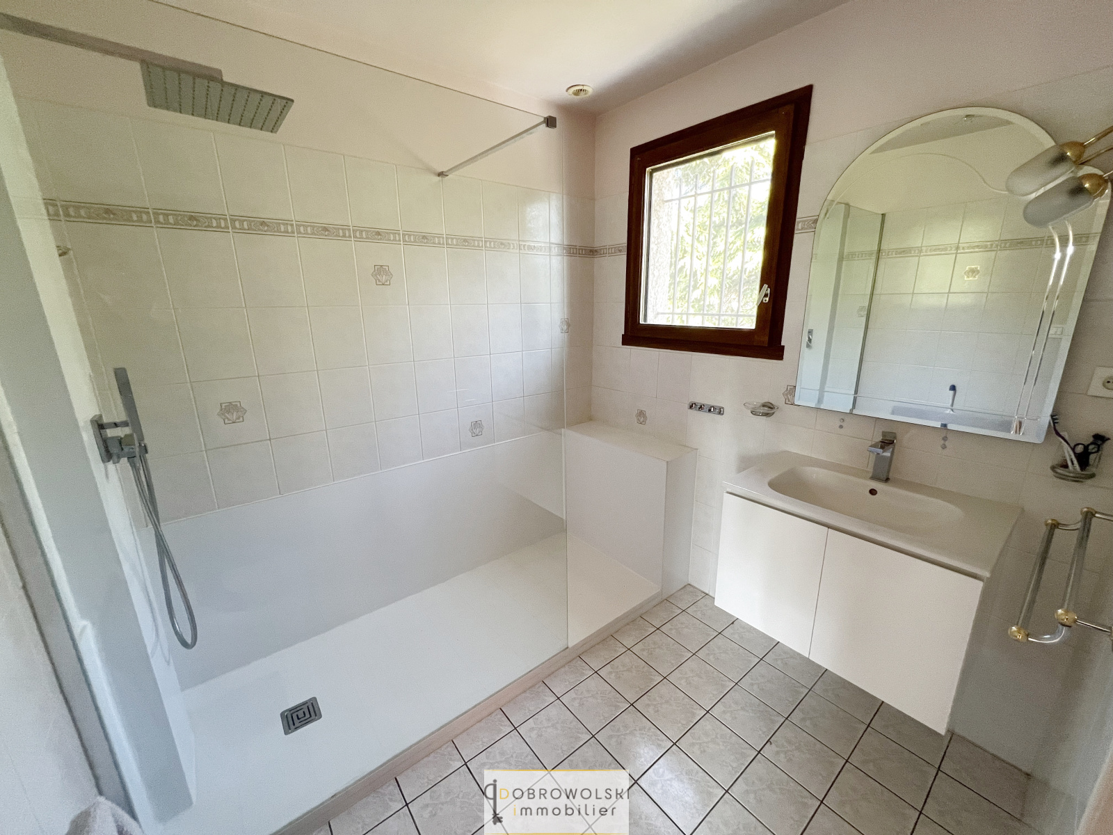 Elle est composée de 2 niveaux, nous trouvons au RDC un espace cuisine indépendant, un WC, un salon/séjour très clair à la triple orientation Est Sud Ouest; l'étage dispose de 4 pièces, d'une SDE et d'un WC. Nous disposons également d'un garage très confortable de plus de 46m2.
