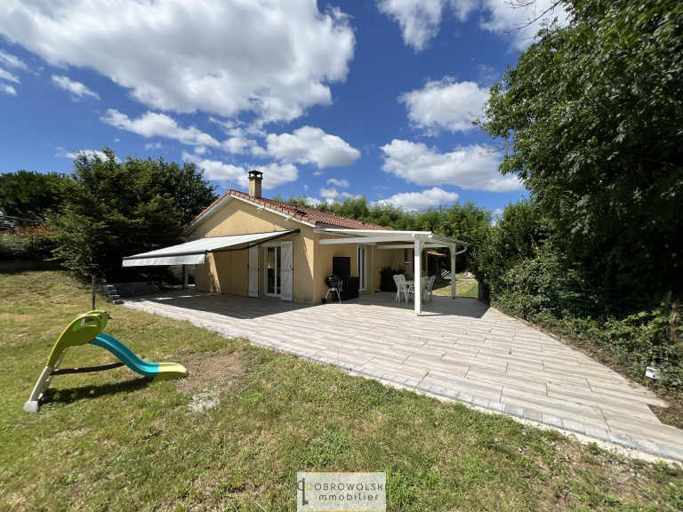 La maison est composée d'une cusine aménagée et équipée ouverte sur un vaste salon séjour très clair donnant sur la terrasse, de 3 chambres, d'une grande buanderie, d'une SDB et d'un WC.