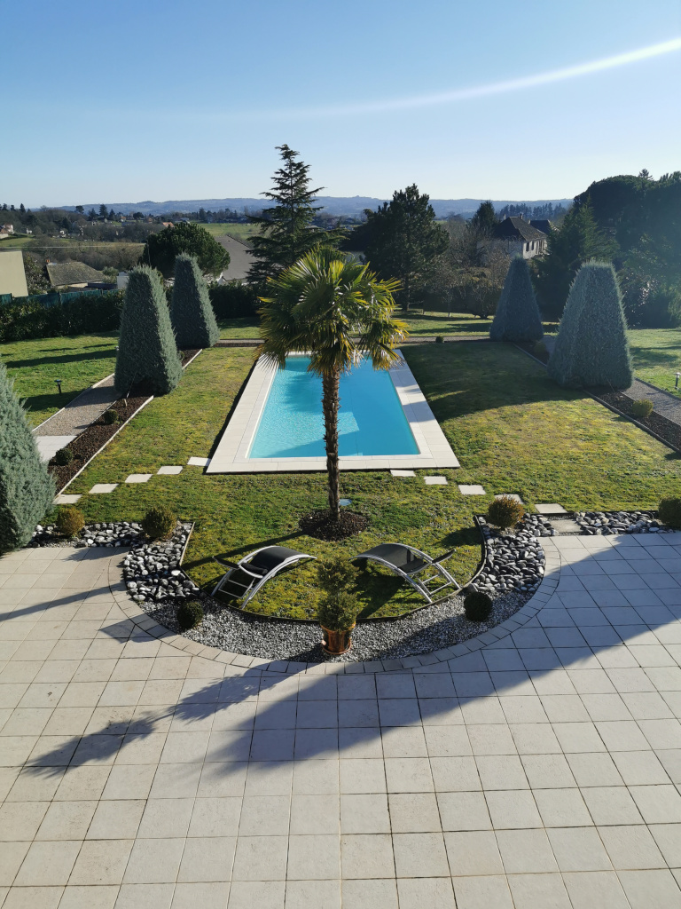 Les espaces extèrieurs offrent plusieurs terrasses, une piscine, un jardin paysagé avec coin pétanque et un coin barbecue. L'ensemble de la propriété est fermée et sécurisée.