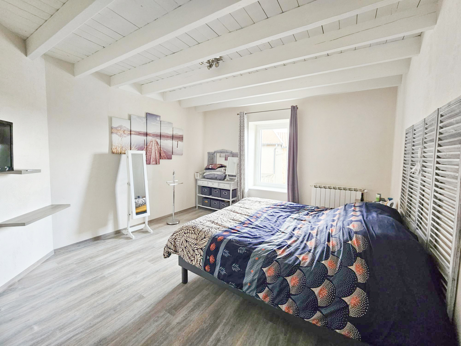 A l'étage, 1 toilette indépendant et 3 grandes chambres de 16 + 15m2, d'une chambre parentale de 17 + 5m2 de dressing, et une de 6m2 actuellement aménagée en bureau.