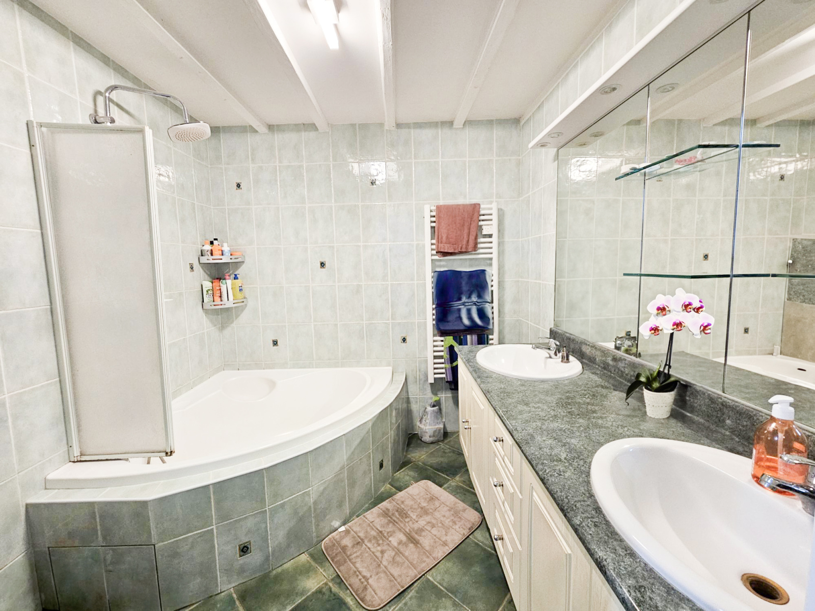 Au RDC, vous retrouverez sa spacieuse et lumineuse pièce à vivre ainsi qu'un toilette et une salle de bain.