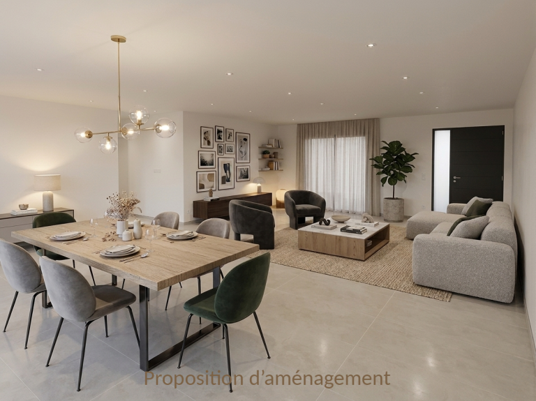 Belles prestations modernes et de qualité avec chauffage au sol par pompe à chaleur air/eau, menuiseries aluminium double vitrage avec volets roulants électriques...