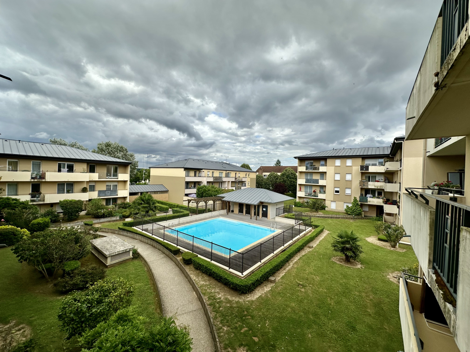 Bel F2 ( loi carrez 37,50 m2 ) lumineux ,avec une grande terrasse vue piscine , parfaitement bien agencé: