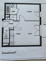 Entrée avec placards , séjour avec cuisine américaine semi-équipée , chambre avec salle de bains et wc indépendant.