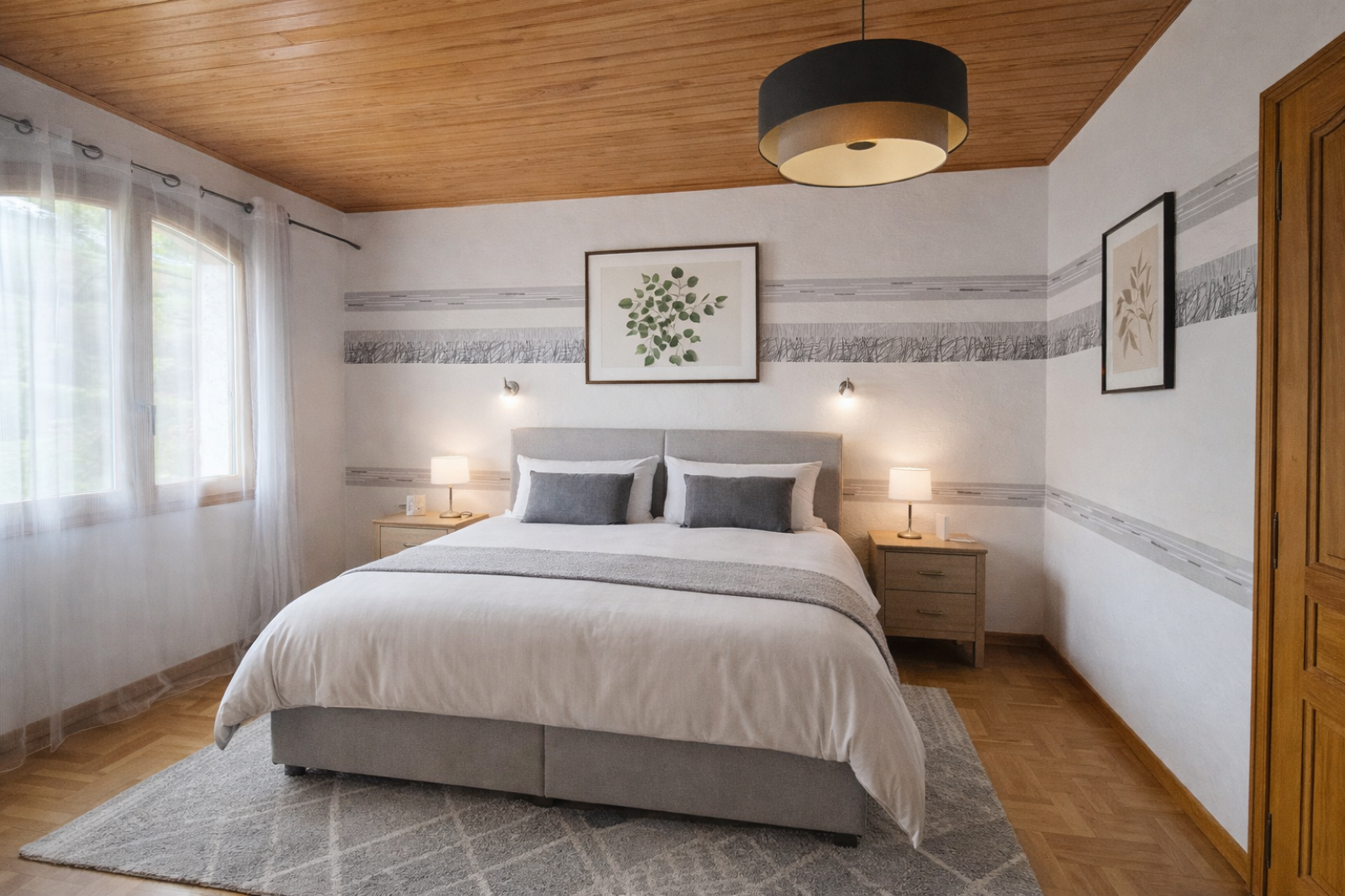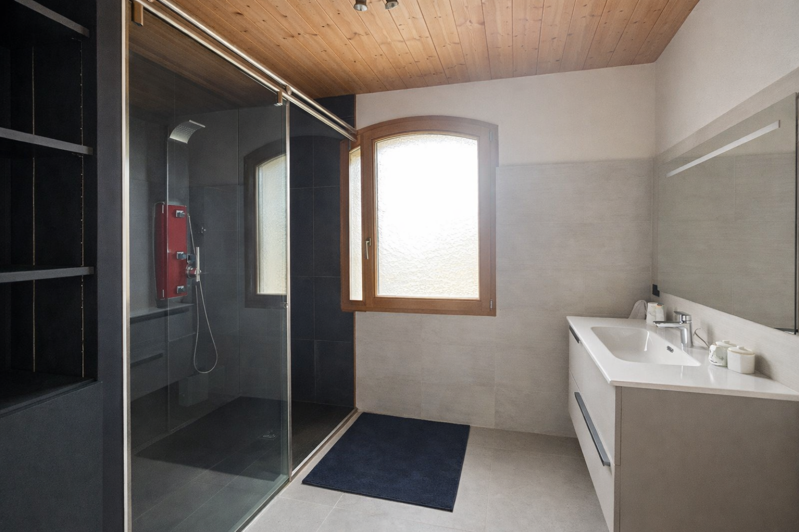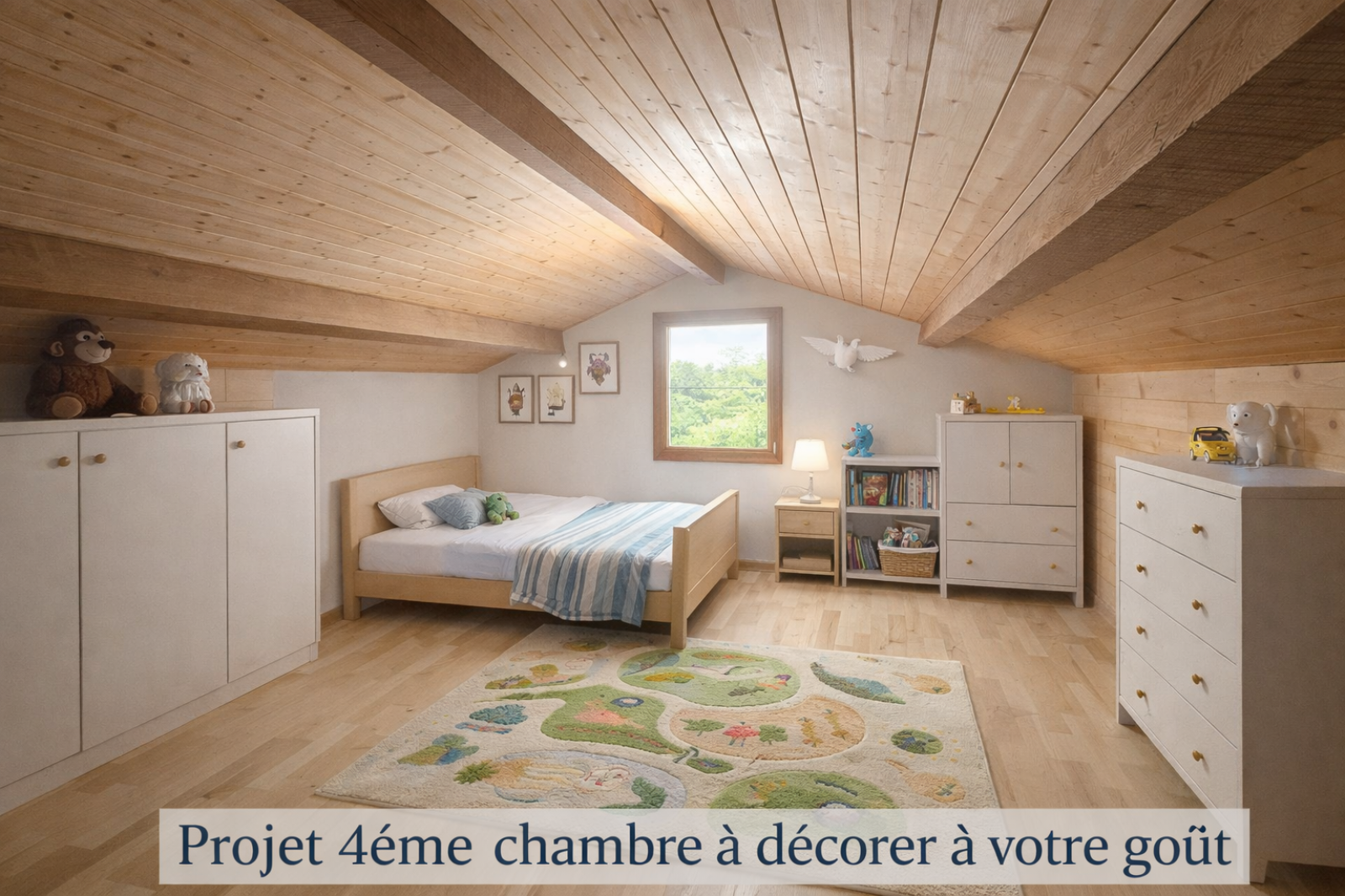 Elle offre 4 chambres dont 1 de 12m2 au rez de chaussée avec une grande salle de bain de 9m2 et 3 chambres à l'étage de 2X11m2 + 1 de 28m2 (qui reste à décorer) avec une salle d'eau moderne, également un espace bureau sur la mezzanine. Une pièce à vivre de 40m2 avec plafond à la française, cheminée avec insert, grande porte fenêtre s'ouvrant sur une belle terrasse avec vue panoramique sur les collines de Roiffieu et une cuisine de 20m2 entièrement équipée moderne.