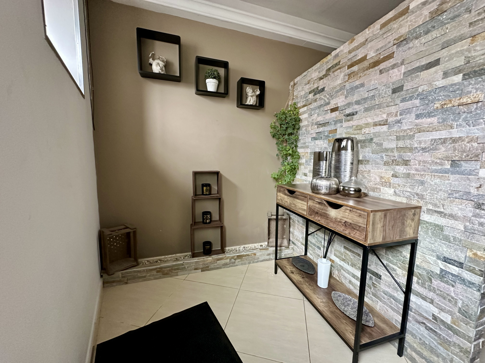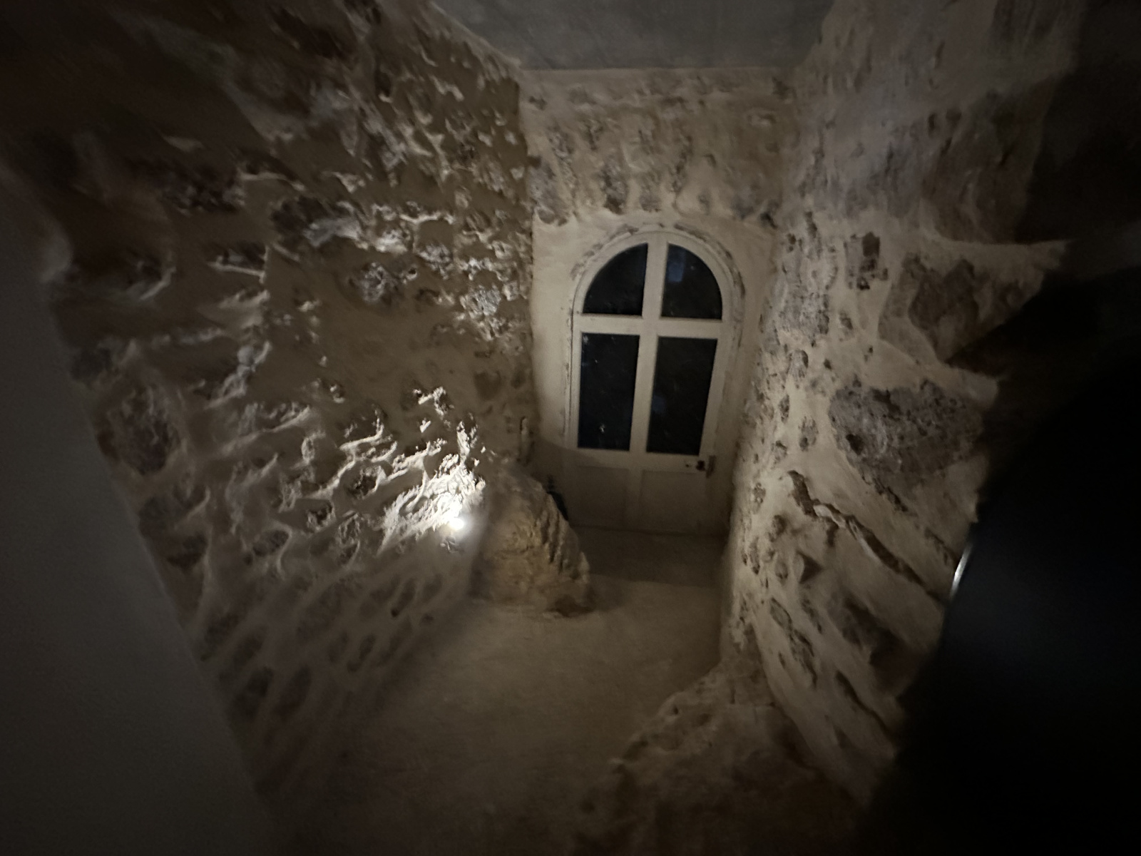 Splendide cave voûtée , garage attenant avec porte automatique.