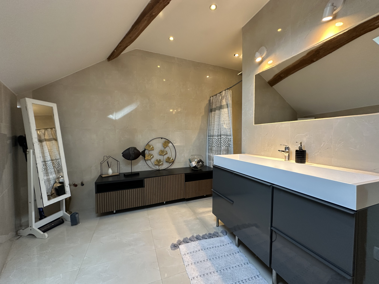 A l'étage , le palier dessert 3 belles chambres atypiques et bien agencées ( placards/dressing) , une salle d'eau spacieuse ( possibilité d'installer une baignoire ) , un wc .
