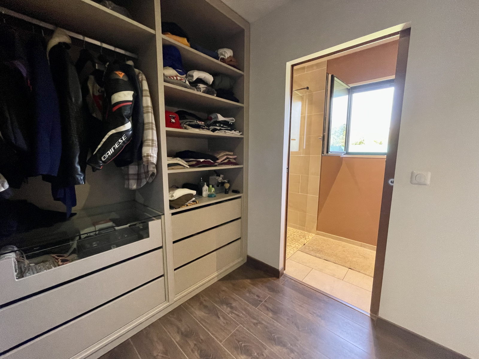 Le couloir dessert 3 chambres dont une véritable suite parentale (dressing/SDE) , une salle de bains , un wc indépendant et une buanderie/chaufferie(pompe à chaleur).