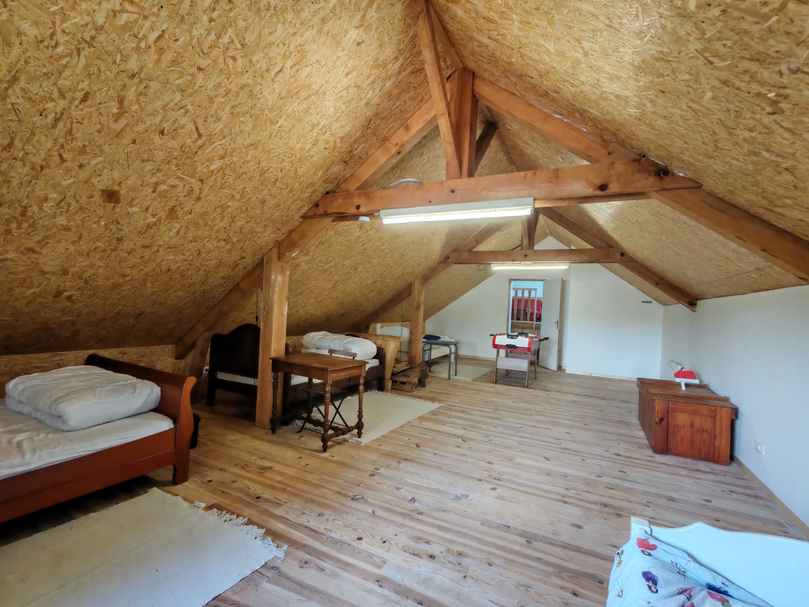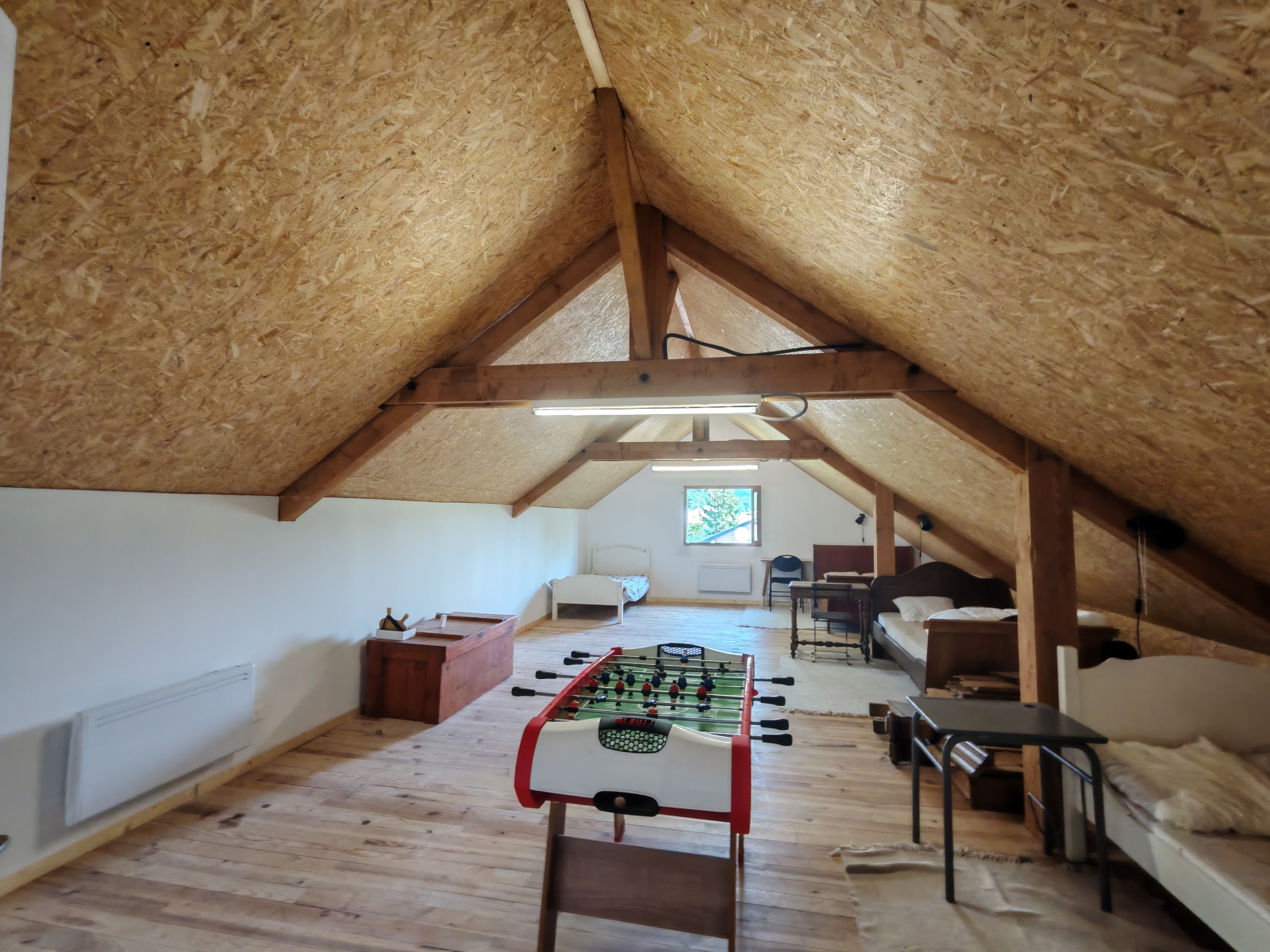 - au 1er : salon, grande pièce conviviale pouvant servir de dortoir, de salle de jeux...