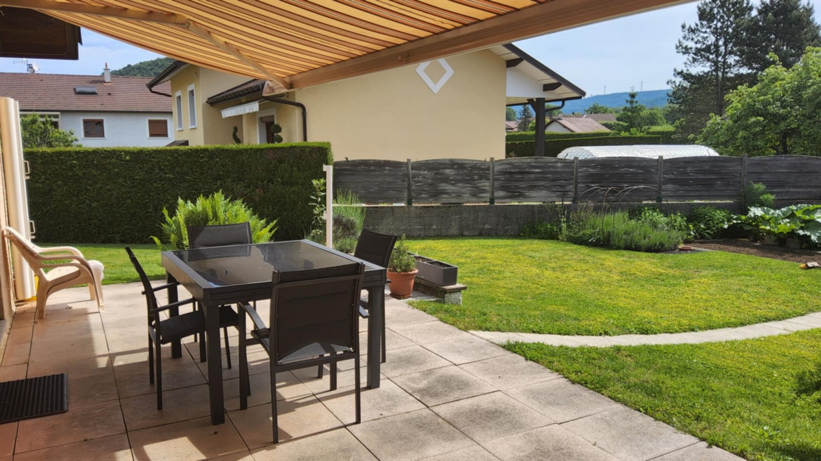 Ce bien vous offre 4 chambres, une cuisine équipée donnant sur une salle de vie lumineuse avec salon et salle à manger, une salle de bain, une salle d'eau, 2 toilettes, un grand garage, 2 terrasses et 2 appentis parce qu'il y a toujours du matériel à ranger. (vélo, granules, tondeuse, outils de jardin etc...)