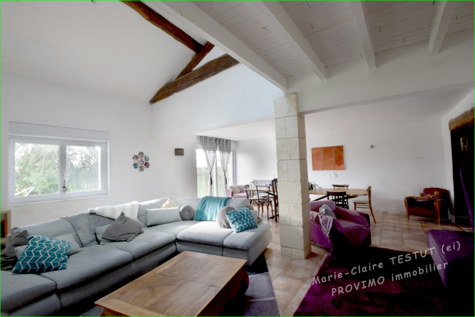 En Exclusivité avec Marie-Claire TESTUT (ei) - A 5 minutes du temple sur lot et de Castelmoron, au calme sans etre isolée - De très beaux volumes pour cette maison de caractère, T5 de 185 m2, en pierres - Composée d une superbe pièce de vie, lumineuse et confortable, avec un insert, elle est aussi bien ouverte sur la cuisine que sur le jardin et la salle de jeux - La spacieuce cuisine, conviviale et fonctionnelle, a été posée en 2018. La maison dispose de 4 chambres, dont 1 en RDC - 1 salle de bains avec douche et WC, 1 mezzanine, 1 grand palier - Au RD se trouve un garage attenant à la cuisine, avec 1 WC et 1 pièce pouvant facilement etre aménaé en salle d eau - Un deuxième garage d environ 55 m2 fera le bonheur d un bricoleur, celui-ci dispose d une mezzanine de 32 m2 - Une pompe à chaleur et un ballon Thermodynamique ont été posé en 2018 - les fenétres sont en double vitrage. Jardin plat d environs 1 000 m2