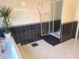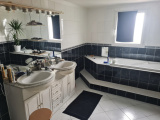 L’étage est agrémenté de 3 chambres dont une de 25 m2, 1 mezzanine, 1 salle de bains avec baignoire + douche et double vasque, et, 1 WC -