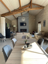 Sandra vous présente cette magnifique demeure en pierre entièrement rénovée. Elle se situe dans un petit village entre Jarnac et Angoulême . Vous n'êtes pas isolés mais tranquilles. Vous disposez de 318m2 habitables sur une parcelle de 1100m2 et d'un triple garage. Le perron dessert une superbe entrée, wc , une chambre parentale avec son dressing se trouve en rez de chaussée , très grand salon de 32m2 , belle cuisine équipée aménagée ouvrant sur un superbe salon salle a manger de 70m2 avec murs en moellons . A l'étage un palier dessert 3 chambres , un dressing ainsi qu'une salle d'eau wc. 2éme étage un plateau de 80m2 aménagé pouvant faire office de chambre , bureau, salle de jeu a votre convenance . cave . double vitrage ,chauffage fioul , Un puit fournit l'eau de la maison . Belle piscine au chlore . Pas de travaux a prévoir. Contact 0683405316