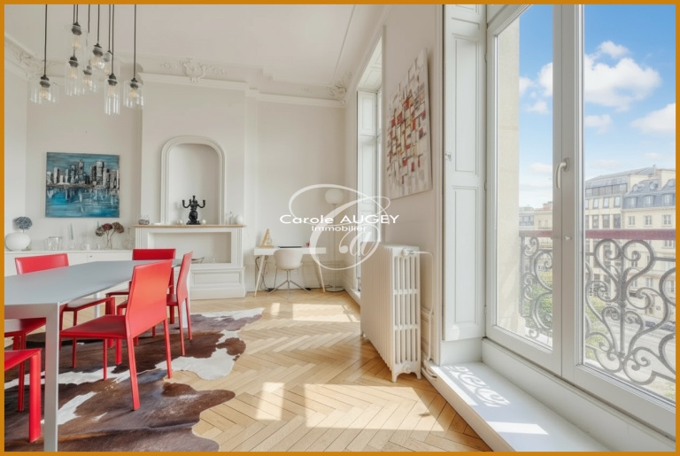 Suivez-moi, et découvrons ensemble ce lieu rare, posé en majesté au troisième étage d’un immeuble haussmannien méticuleusement restauré, où chaque détail a été pensé pour offrir un cadre de vie confidentiel et prestigieux.