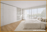 Ici, le jardin n’est pas un simple extérieur : il fait partie intégrante de la maison. Une large bande quasi continue de baies vitrées remplace les murs côté jardin, offrant une ouverture spectaculaire et une luminosité remarquable. Les perspectives sont dégagées, la verdure s’invite partout.