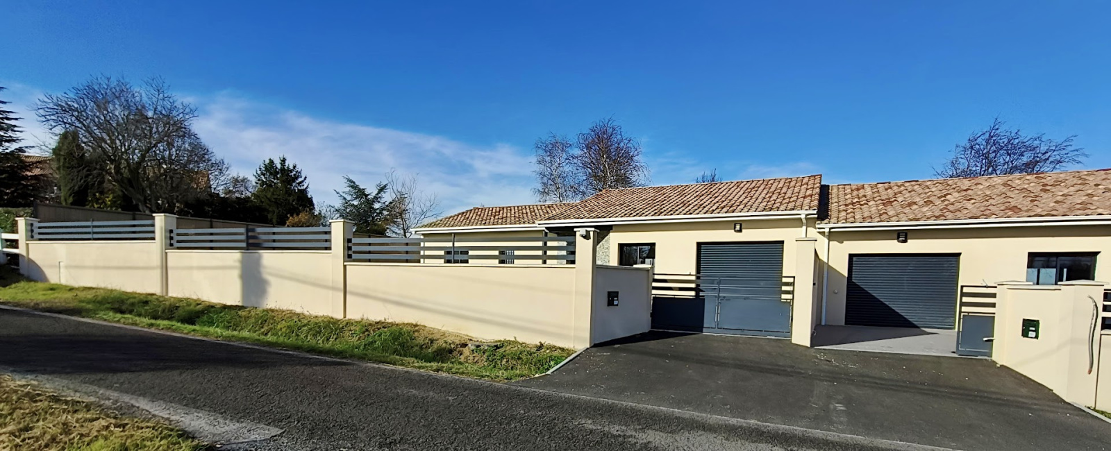 Extérieurs entièrement aménagés : portail électrique, clôtures, murette haute, boîte aux lettres