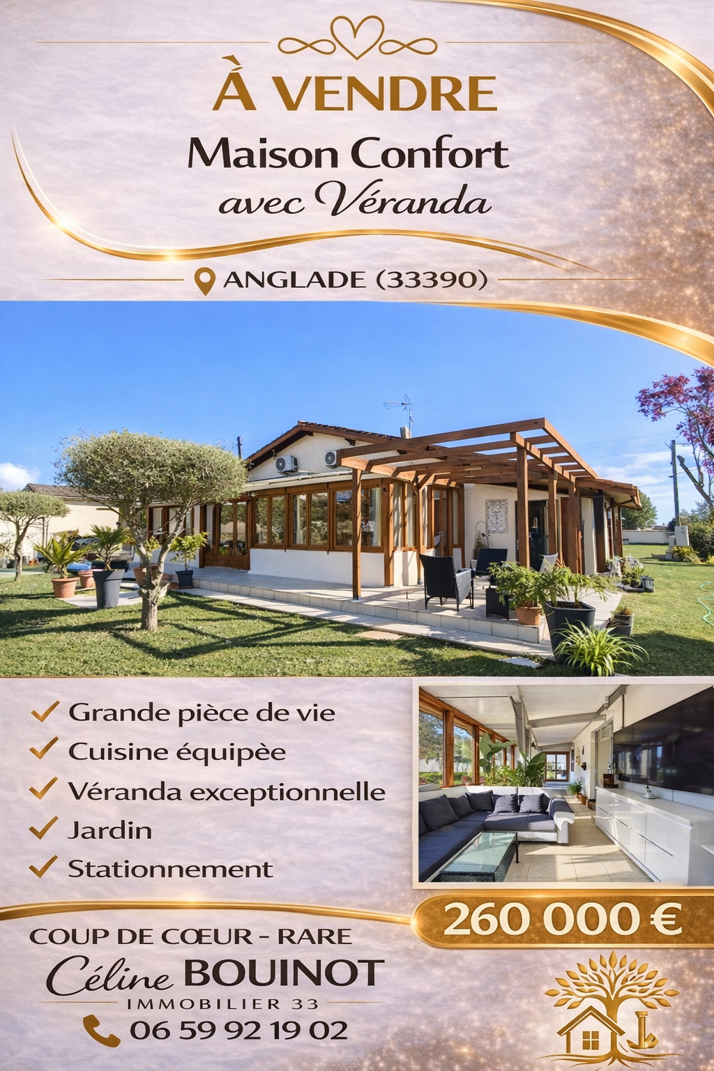 Prix de vente 250 000 € Les honoraires d'agence seront intégralement à la charge du vendeur